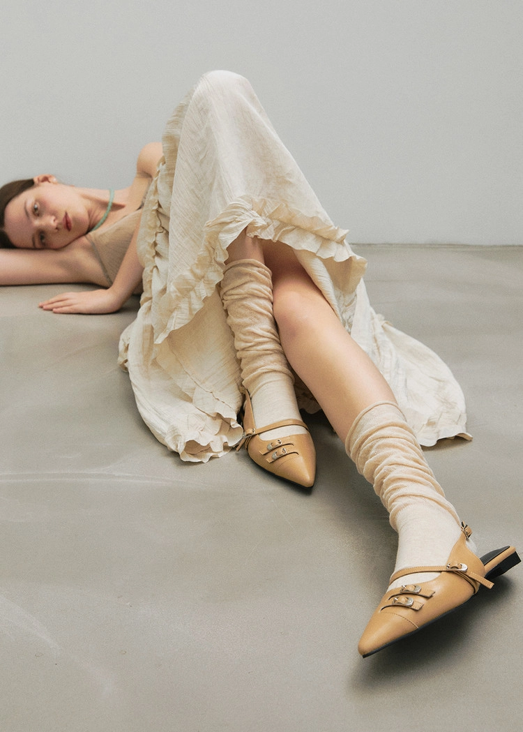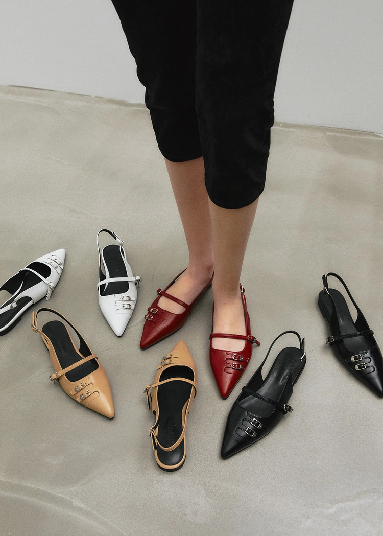 CINDY LOW 신디 로우 슬링백 스틸레토 플랫슈즈